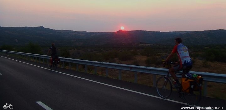 ![]() Von der Passhöhe fahren wir bis auf drei kleinere Anstiege nur noch bergab nach Kirklareli. Auf dem nagelneuen Asphalt kommen wir zügig voran. Naja, so haben sich der Straßenausbau und die verschwendeten EU-Millionen wenigstens für uns gelohnt. Autos sind weiterhin Fehlanzeige. Wir sehen nur ein einzigen Auto das hält auch gleich an: der Fahrer ist ein in Deutschland lebender Türke und bringt seinem minderjährigen Neffen hier das Autofahren bei. Er kommt aus Freudenstadt. |